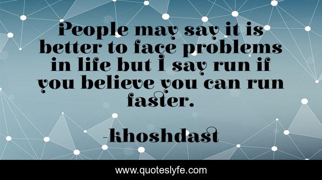This page presents the quote "People may say it is better to face problems in life but I say run if you believe you can run faster.". Author of this quote is khoshdast. This quote is about laziness, truth, reality,.