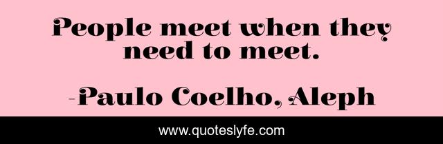 This page presents the quote "People meet when they need to meet.". Author of this quote is Paulo Coelho, Aleph. This quote is about friendship, destiny, fate,.
