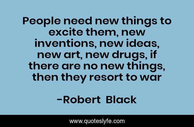 This page presents the quote "People need new things to excite them, new inventions, new ideas, new art, new drugs, if there are no new things, then they resort to war". Author of this quote is Robert Black. This quote is about new, art, war, people,.