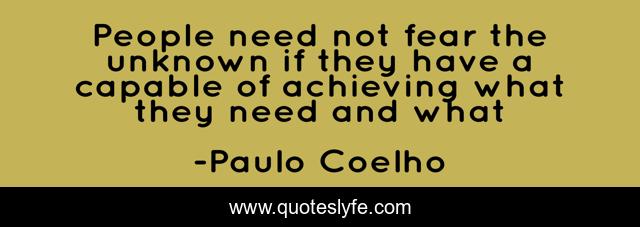 This page presents the quote "People need not fear the unknown if they have a capable of achieving what they need and what". Author of this quote is Paulo Coelho. This quote is about fear, ambition, inspiration,.