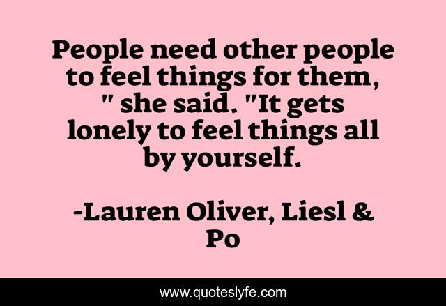 "Lauren Oliver, Liesl & Po Quotes." Quoteslyfe.com, 2025. Mon. 08 Dec. 2025. <https://www.quoteslyfe.com/quote/People-need-other-people-to-feel-things-71067>.