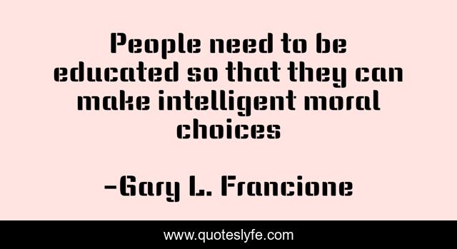 This page presents the quote "People need to be educated so that they can make intelligent moral choices". Author of this quote is Gary L. Francione. This quote is about companion-animals, communication, delusion, companies, animal-rights, vegan, happy-meat, marketing, education,.
