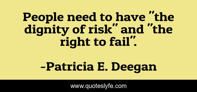 This page presents the quote "People need to have "the dignity of risk" and "the right to fail".". Author of this quote is Patricia E. Deegan. This quote is about fail, right,.