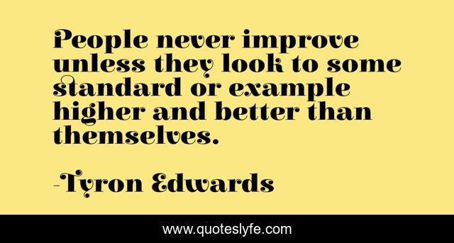 This page presents the quote "People never improve unless they look to some standard or example higher and better than themselves.". Author of this quote is Tyron Edwards. This quote is about models, role,.