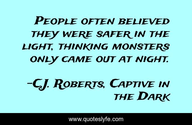 This page presents the quote "People often believed they were safer in the light, thinking monsters only came out at night.". Author of this quote is C.J. Roberts, Captive in the Dark. This quote is about dark, light, caleb, captive-in-the-dark,.