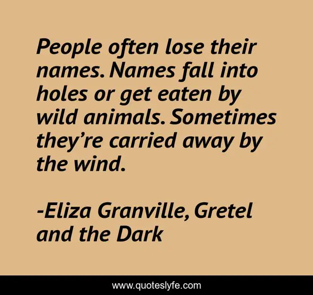 "Eliza Granville, Gretel and the Dark Quotes." Quoteslyfe.com, 2025. Fri. 05 Dec. 2025. <https://www.quoteslyfe.com/quote/People-often-lose-their-names-Names-fall-51470>.