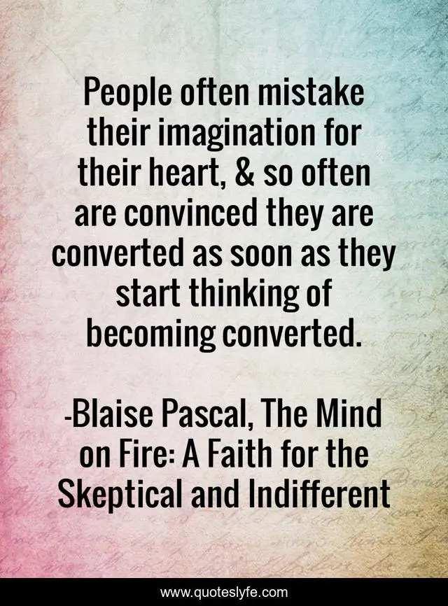 "Blaise Pascal, The Mind on Fire: A Faith for the Skeptical and Indifferent Quotes." Quoteslyfe.com, 2025. Fri. 05 Dec. 2025. <https://www.quoteslyfe.com/quote/People-often-mistake-their-imagination-for-their-166692>.