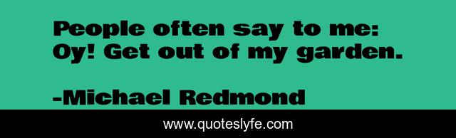 This page presents the quote "People often say to me: Oy! Get out of my garden.". Author of this quote is Michael Redmond. This quote is about comedy, humour, stand-up,.