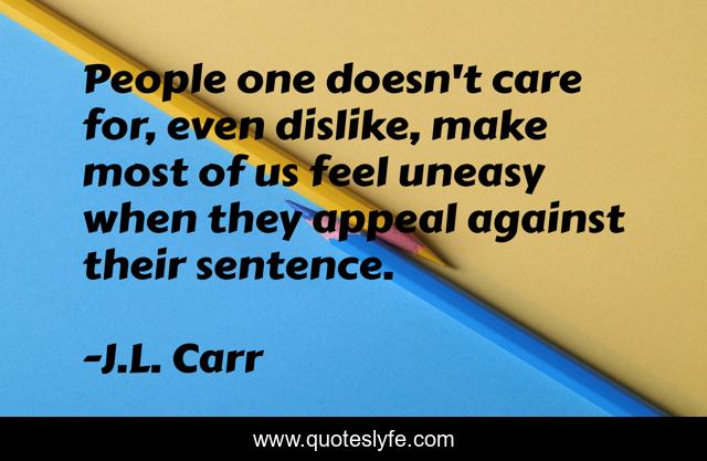 This page presents the quote "People one doesn't care for, even dislike, make most of us feel uneasy when they appeal against their sentence.". Author of this quote is J.L. Carr. This quote is about life, carr, country, j, l, month,.