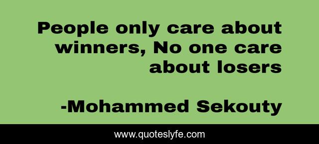 This page presents the quote "People only care about winners, No one care about losers". Author of this quote is Mohammed Sekouty. .