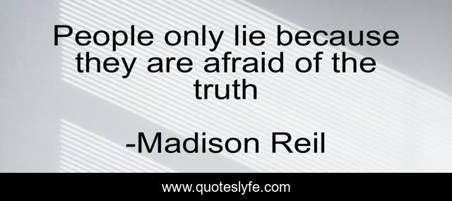 This page presents the quote "People only lie because they are afraid of the truth". Author of this quote is Madison Reil. This quote is about lies, fear, honesty, truth,.