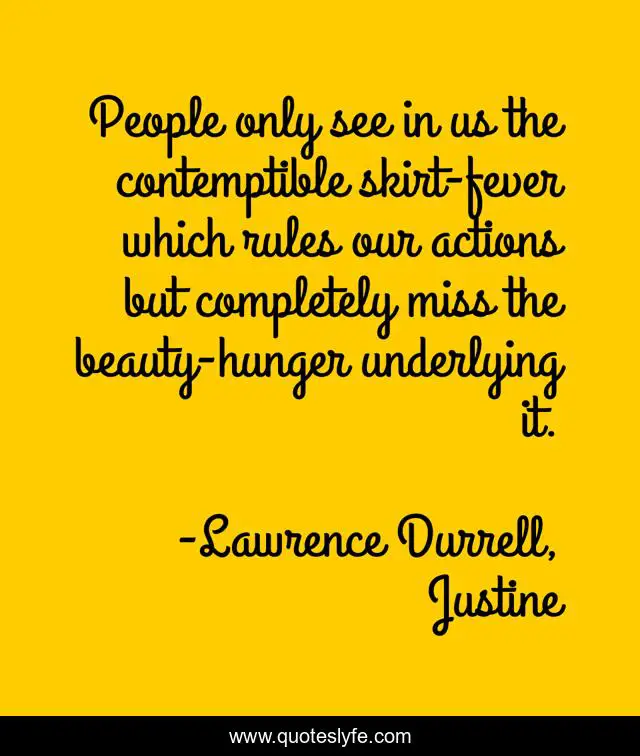 This page presents the quote "People only see in us the contemptible skirt-fever which rules our actions but completely miss the beauty-hunger underlying it.". Author of this quote is Lawrence Durrell, Justine. .