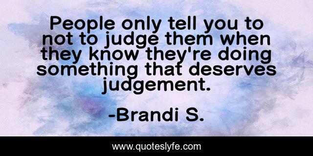 This page presents the quote "People only tell you to not to judge them when they know they're doing something that deserves judgement.". Author of this quote is Brandi S.. .