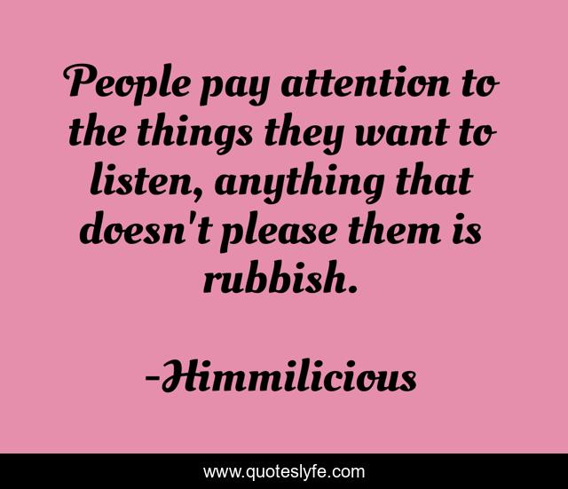 This page presents the quote "People pay attention to the things they want to listen, anything that doesn't please them is rubbish.". Author of this quote is Himmilicious. .