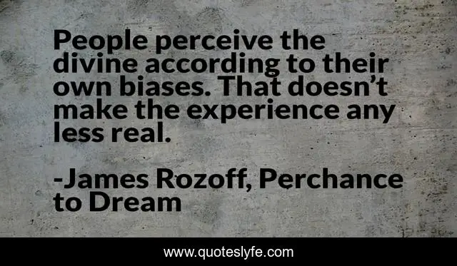 This page presents the quote "People perceive the divine according to their own biases. That doesn’t make the experience any less real.". Author of this quote is James Rozoff, Perchance to Dream. This quote is about religion, divine, perception, spirituality,.