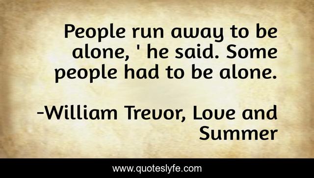 This page presents the quote "People run away to be alone, ' he said. Some people had to be alone.". Author of this quote is William Trevor, Love and Summer. This quote is about loneliness, people,.