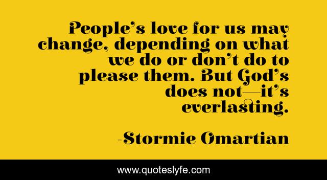 This page presents the quote "People’s love for us may change, depending on what we do or don’t do to please them. But God’s does not—it’s everlasting.". Author of this quote is Stormie Omartian. This quote is about motivation, christian, uplifting, powerful, encouraging, encouragement, jesus, spirituality, inspirational,.