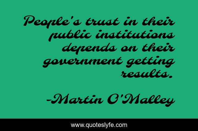 This page presents the quote "People's trust in their public institutions depends on their government getting results.". Author of this quote is Martin O'Malley. This quote is about government, results, people,.