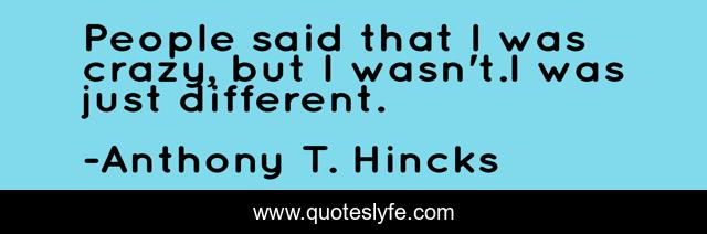 This page presents the quote "People said that I was crazy, but I wasn't.I was just different.". Author of this quote is Anthony T. Hincks. This quote is about crazy, said, people, philosophy, different, sanity, sane,.