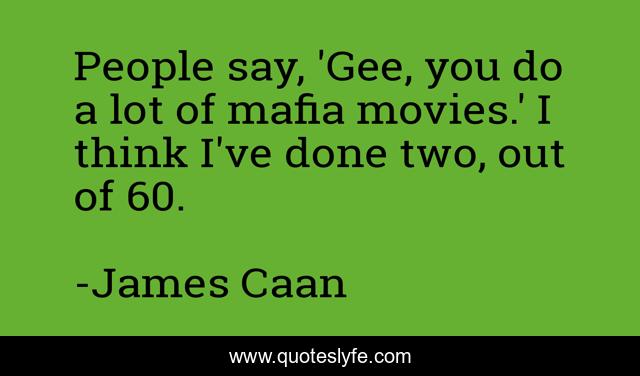 This page presents the quote "People say, 'Gee, you do a lot of mafia movies.' I think I've done two, out of 60.". Author of this quote is James Caan. This quote is about think, people,.