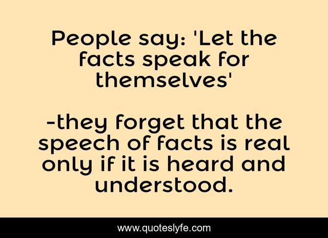 "they forget that the speech of facts is real only if it is heard and understood. Quotes." Quoteslyfe.com, 2025. Mon. 08 Dec. 2025. <https://www.quoteslyfe.com/quote/People-say-Let-the-facts-speak-for-156896>.