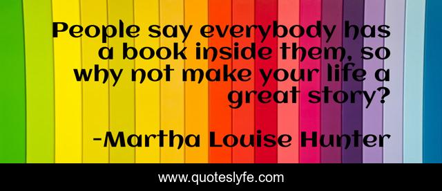 This page presents the quote "People say everybody has a book inside them, so why not make your life a great story?". Author of this quote is Martha Louise Hunter. This quote is about enthusiasm, philosophy, humor, inspirational, feel-good,.