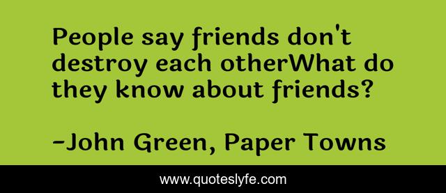 "John Green, Paper Towns Quotes." Quoteslyfe.com, 2025. Mon. 08 Dec. 2025. <https://www.quoteslyfe.com/quote/People-say-friends-don-t-destroy-each-50944>.