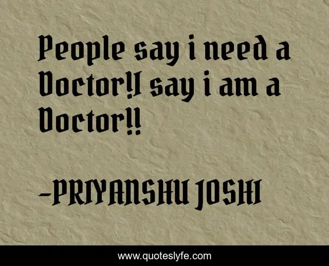"PRIYANSHU JOSHI Quotes." Quoteslyfe.com, 2025. Mon. 08 Dec. 2025. <https://www.quoteslyfe.com/quote/People-say-i-need-a-Doctor-I-215232>.