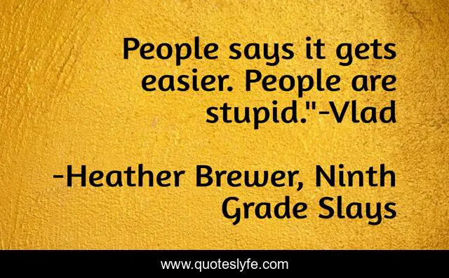 This page presents the quote "People says it gets easier. People are stupid."-Vlad". Author of this quote is Heather Brewer, Ninth Grade Slays. This quote is about scary, heather, vladimir, brewer, of, horror, people, it, sad,.