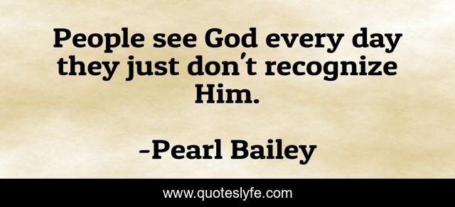 This page presents the quote "People see God every day they just don't recognize Him.". Author of this quote is Pearl Bailey. .