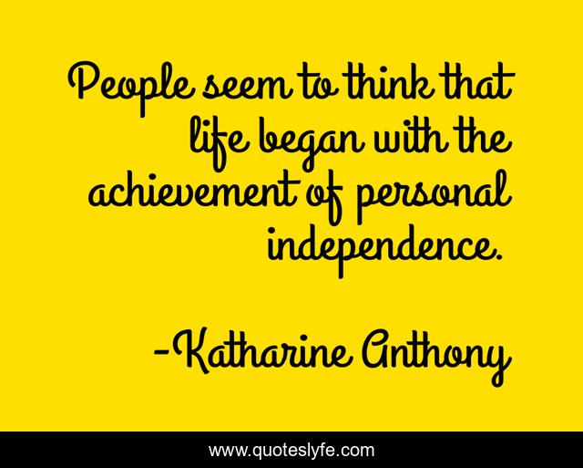 This page presents the quote "People seem to think that life began with the achievement of personal independence.". Author of this quote is Katharine Anthony. This quote is about life, achievement, people,.