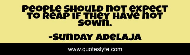 This page presents the quote "People should not expect to reap if they have not sown.". Author of this quote is Sunday Adelaja. This quote is about expectations, people, sowing, reaping,.