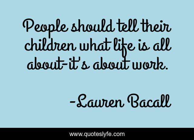 This page presents the quote "People should tell their children what life is all about-it's about work.". Author of this quote is Lauren Bacall. .