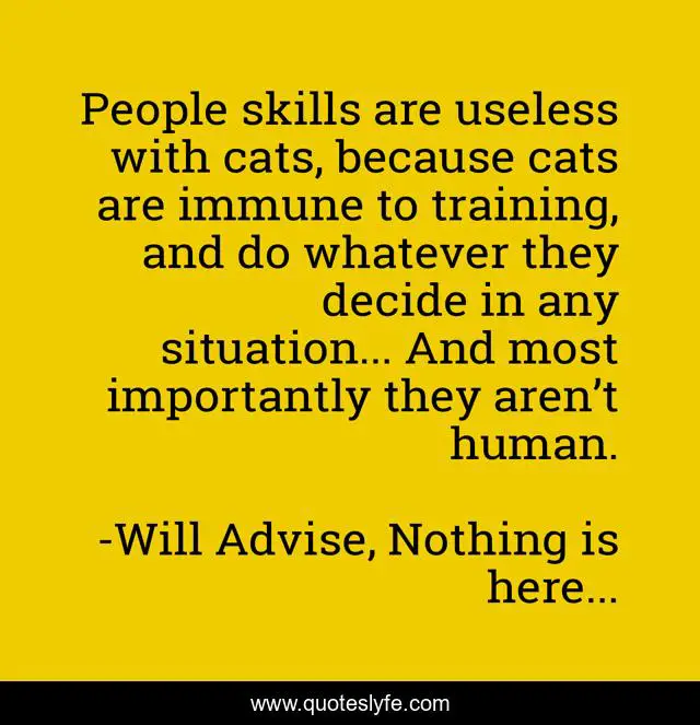 "Will Advise, Nothing is here... Quotes." Quoteslyfe.com, 2025. Fri. 05 Dec. 2025. <https://www.quoteslyfe.com/quote/People-skills-are-useless-with-cats-because-164897>.