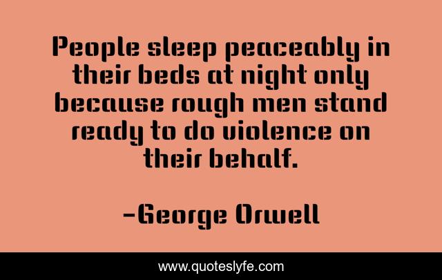 This page presents the quote "People sleep peaceably in their beds at night only because rough men stand ready to do violence on their behalf.". Author of this quote is George Orwell. This quote is about military, violence, police,.