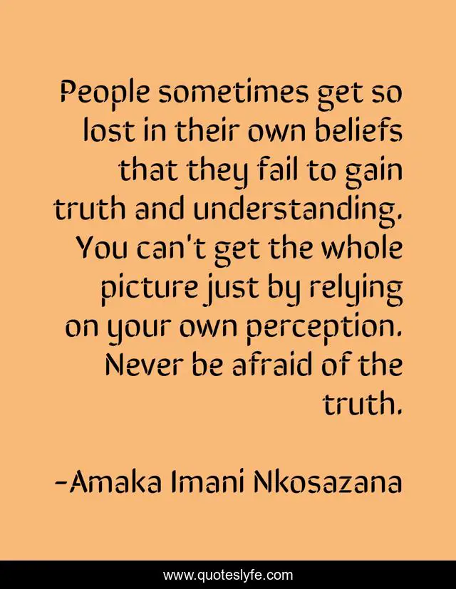 People sometimes get so lost in their own beliefs that they fail to gain truth and understanding. You can't get the whole picture just by relying on your own perception. Never be afraid of the truth.