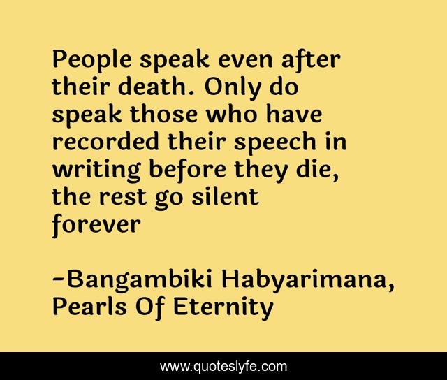 "Bangambiki Habyarimana, Pearls Of Eternity Quotes." Quoteslyfe.com, 2025. Mon. 08 Dec. 2025. <https://www.quoteslyfe.com/quote/People-speak-even-after-their-death-Only-108096>.