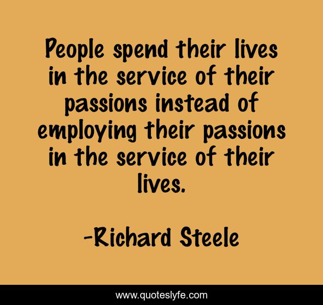 This page presents the quote "People spend their lives in the service of their passions instead of employing their passions in the service of their lives.". Author of this quote is Richard Steele. This quote is about lifetime-version, motivate, inspire, action-handbook, motivational-inspirational, inspirational-living, motivational, motivational-living, motivation,.
