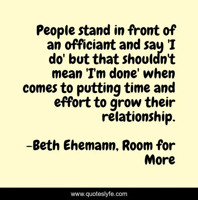 This page presents the quote "People stand in front of an officiant and say 'I do' but that shouldn't mean 'I'm done' when comes to putting time and effort to grow their relationship.". Author of this quote is Beth Ehemann, Room for More. .