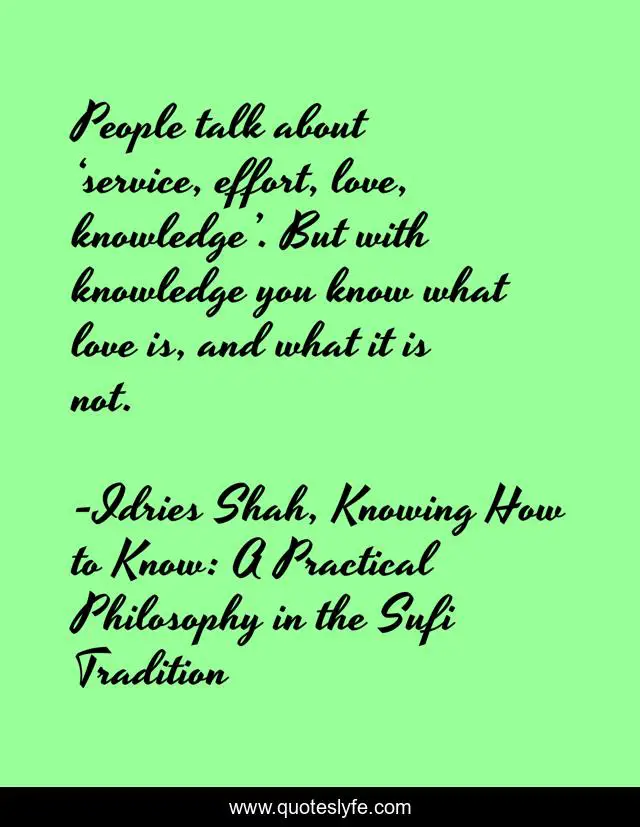 "Idries Shah, Knowing How to Know: A Practical Philosophy in the Sufi Tradition Quotes." Quoteslyfe.com, 2025. Sat. 06 Dec. 2025. <https://www.quoteslyfe.com/quote/People-talk-about-service-effort-love-knowledge-178225>.