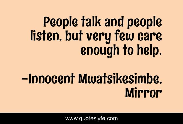 This page presents the quote "People talk and people listen, but very few care enough to help.". Author of this quote is Innocent Mwatsikesimbe, Mirror. This quote is about life, love, people, self-improvement, affection, care,.