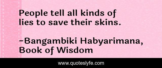This page presents the quote "People tell all kinds of lies to save their skins.". Author of this quote is Bangambiki Habyarimana, Book of Wisdom. This quote is about lie, lying, lies,.