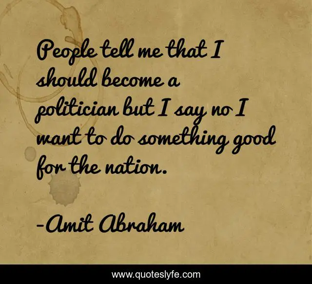 This page presents the quote "People tell me that I should become a politician but I say no I want to do something good for the nation.". Author of this quote is Amit Abraham. This quote is about country, politicians, patriotism,.