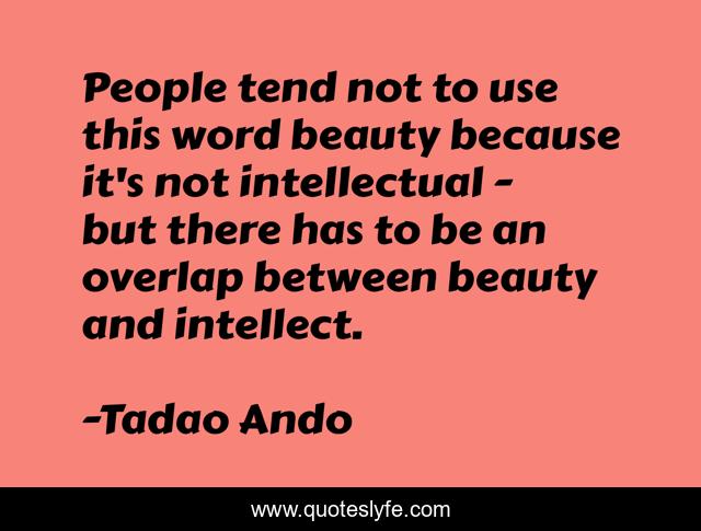 This page presents the quote "People tend not to use this word beauty because it's not intellectual - but there has to be an overlap between beauty and intellect.". Author of this quote is Tadao Ando. This quote is about intellectual, people,.