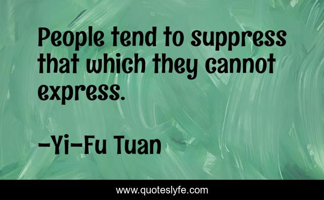 This page presents the quote "People tend to suppress that which they cannot express.". Author of this quote is Yi-Fu Tuan. This quote is about expression, experience, suppression,.