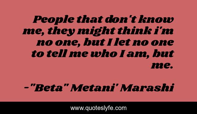 This page presents the quote "People that don't know me, they might think i'm no one, but I let no one to tell me who I am, but me.". Author of this quote is "Beta" Metani' Marashi. .