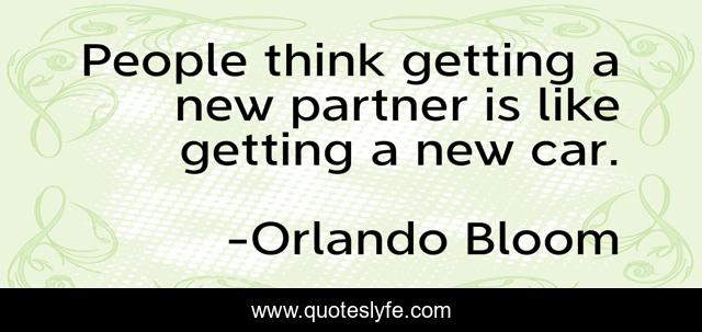 This page presents the quote "People think getting a new partner is like getting a new car.". Author of this quote is Orlando Bloom. This quote is about partner, think, people,.