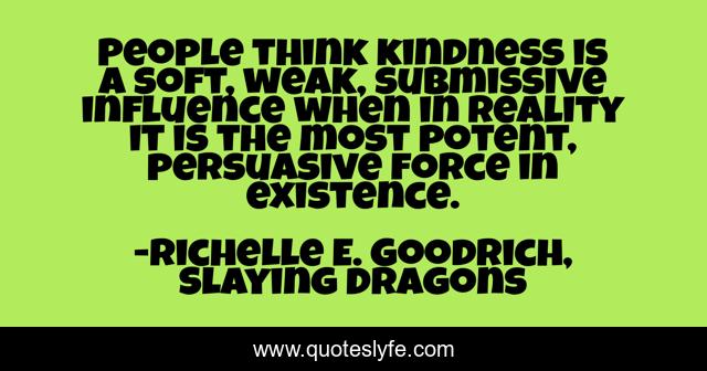 "Richelle E. Goodrich, Slaying Dragons Quotes." Quoteslyfe.com, 2025. Sat. 06 Dec. 2025. <https://www.quoteslyfe.com/quote/People-think-kindness-is-a-soft-weak-136458>.