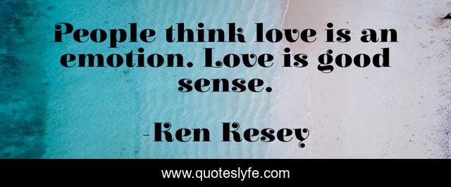 This page presents the quote "People think love is an emotion. Love is good sense.". Author of this quote is Ken Kesey. This quote is about love is, good, people,.