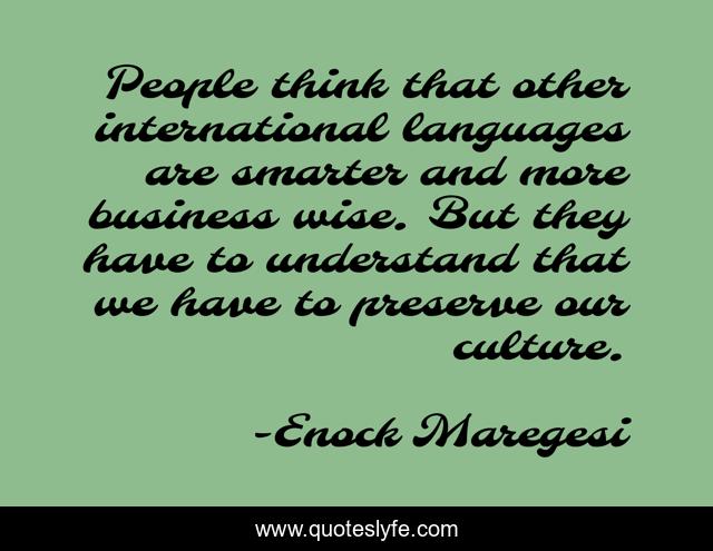 This page presents the quote "People think that other international languages are smarter and more business wise. But they have to understand that we have to preserve our culture.". Author of this quote is Enock Maregesi. This quote is about preserve, international-languages, people, smarter, languages, culture, business-wise,.